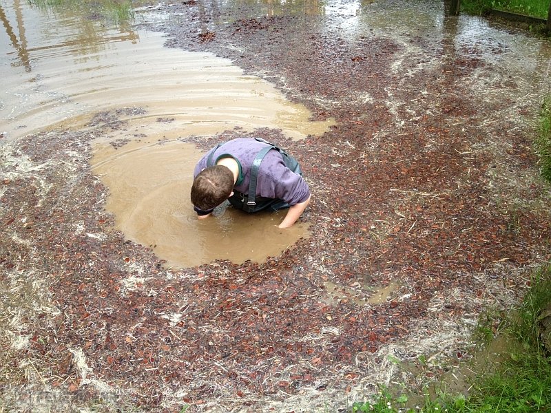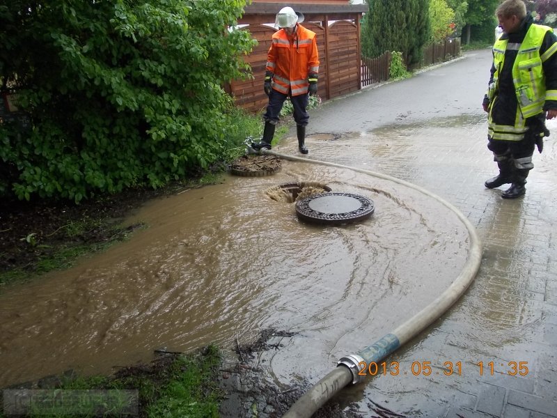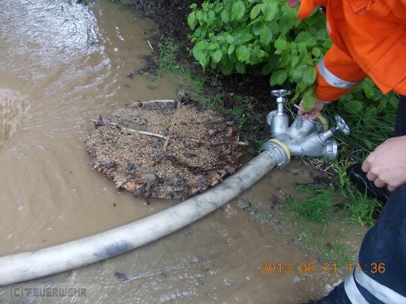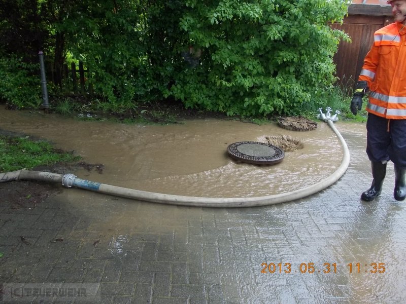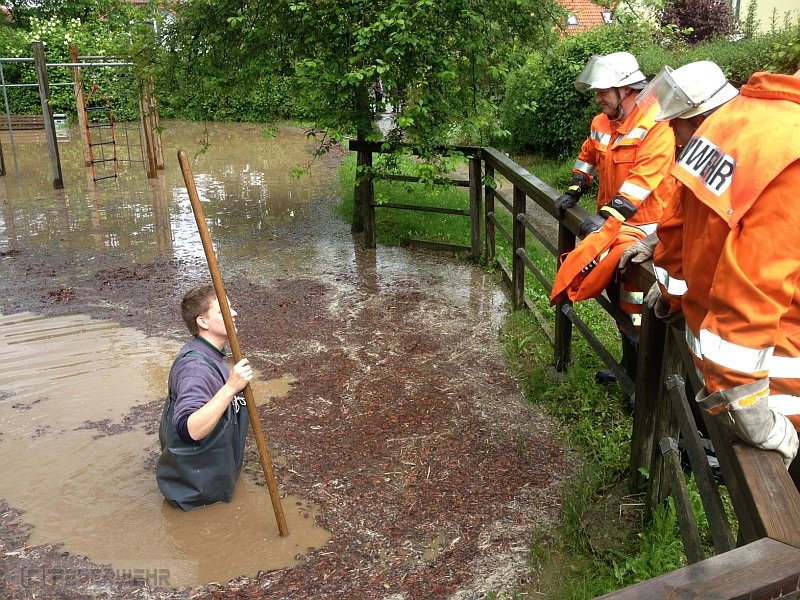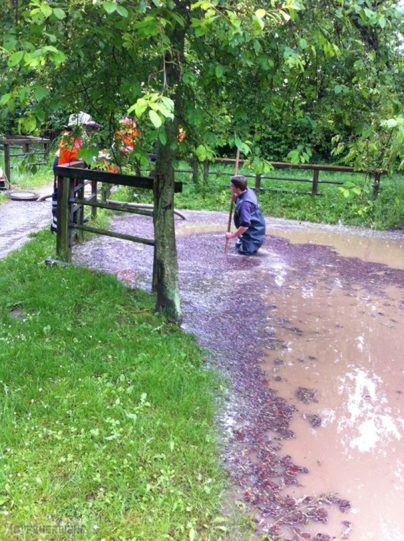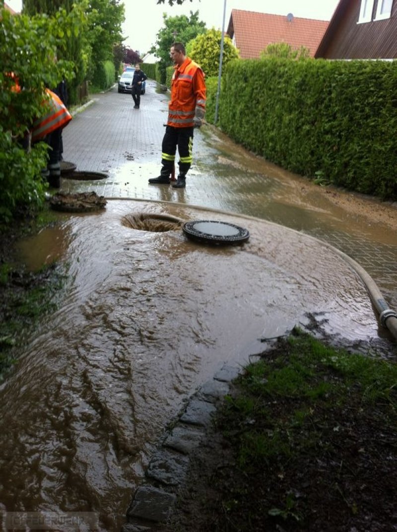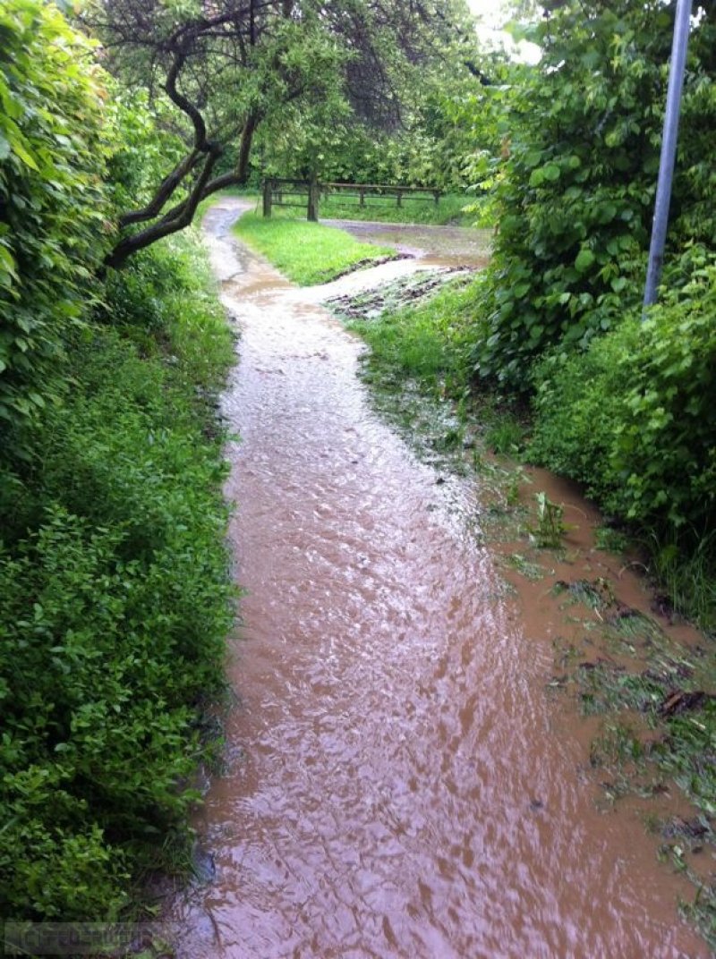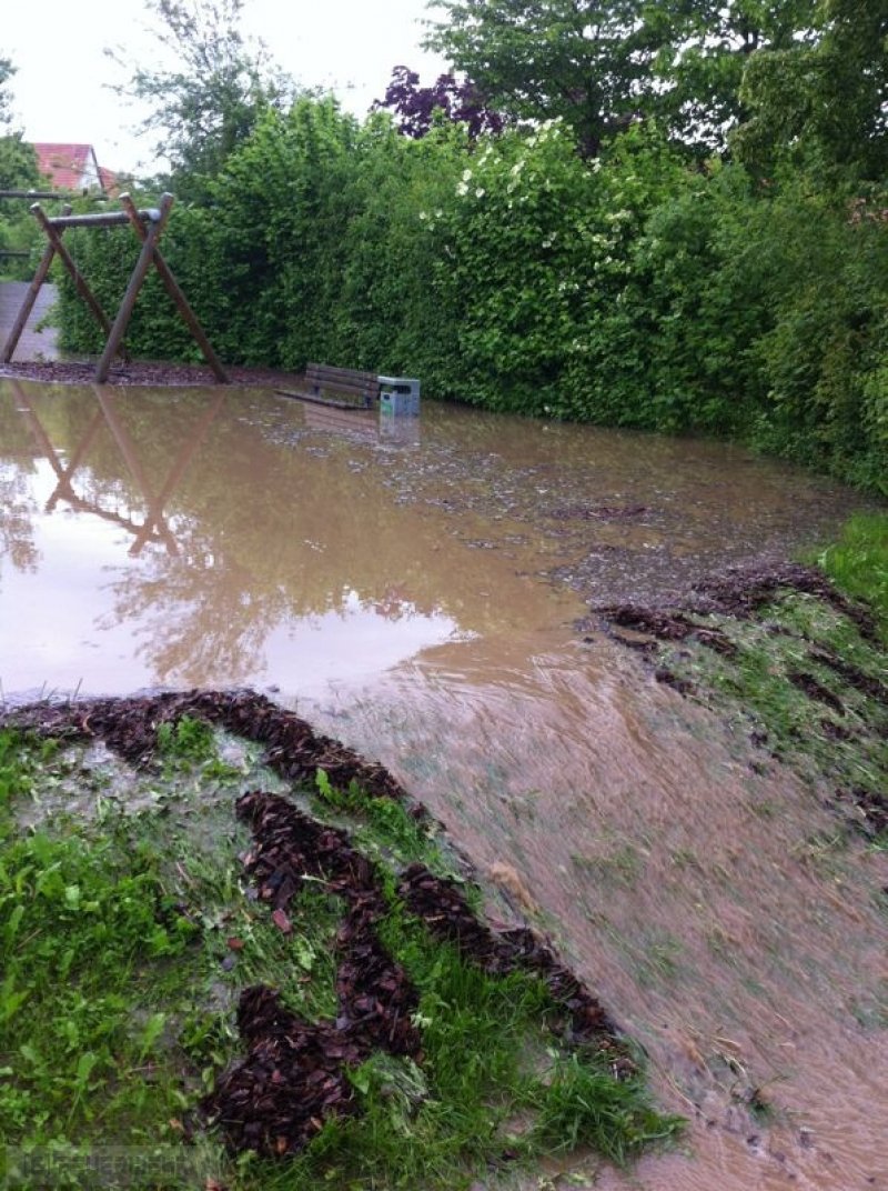 Wasser laüft vom Acker ,überschwemmt Spielplatz und droht in Keller einzudringen.