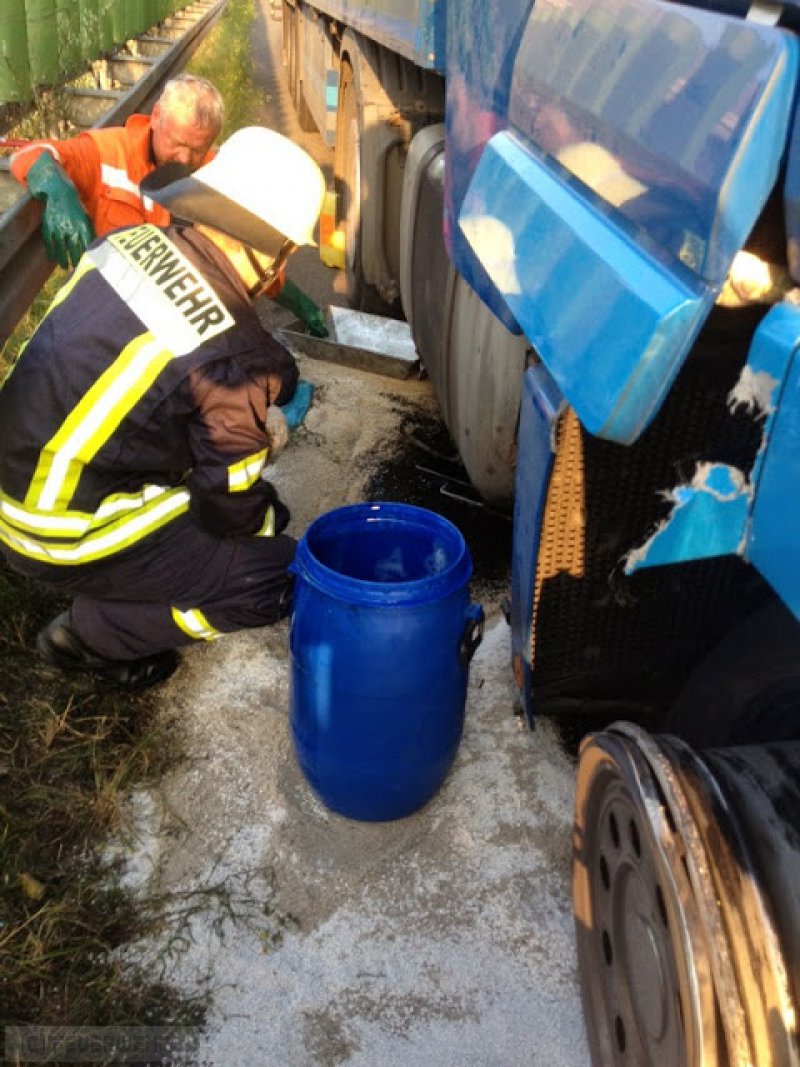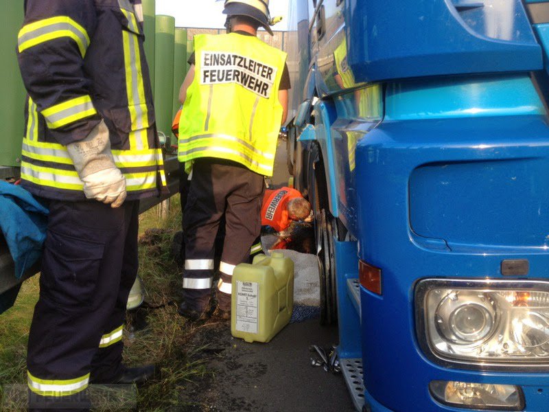 Ein beschädigter Dieseltank an einem LKW führte zu einem weiteren Einsatz auf der Autobahn 39 in dieser Woche. Am 16. 09. gegen 17:30 Uhr rückten die Ortsfeuerwehren Schandelah und Cremlingen aus, um den Tank an dem Fahtzeug abzudichten. Paralell wurde der Diesel, der bereits ausgetreten war, mit Hilfe von Bindemittel aufgenommen. Der Einsatz dauerte rund 1,5 Stunden. Für diese Zeit war die Autobahn 39 zwischen den Auffahrten Scheppau und Cremlingen nur halbseitig befahrbar.