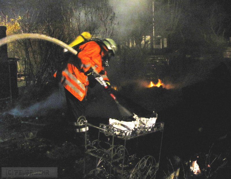 In der Nacht zum 03. April 2011 kam es aus ungeklärter Ursache zu einem Brand einer Gartenlaube im Kleingartenverein an der Magdeburgstraße in Weddel. Eine weitere angrenzende Nachbarlaube wurde durch das Feuer in Mitleidenschaft gezogen. Die Feuerwehren aus den Ortschaften Weddel, Cremlingen und Klein Schöppenstedt konnten nach der Alarmierung um 2:45 Uhr das Feuer schnell unter Kontrolle bringen und so größeren Schaden abwenden. Eine in dem Gebäude befindliche Gasflasche musste durch die Kameraden nach den Löscharbeiten längere Zeit gekühlt werden, um eine Explosion zu verhindern. Zu kurzzeitigen Problemen kam es zu Beginn des Einsatzes. Mehrere PKW, die auf der Magdeburgerstraße geparkt waren, versperrten den Zugang zu den sich dort befindlichen Hydranten und zwangen die Feuerwehr, auf weiter entfernte auszuweichen.