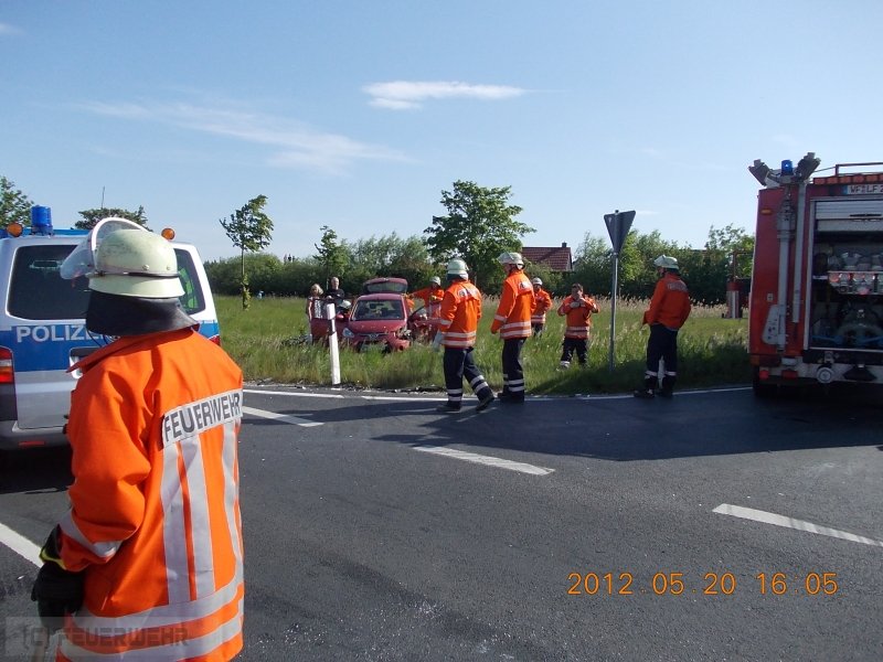 Die Kreuzung der Bundesstraße 1 / Abzweig Cremlingen entwickelt sich für die Einsatzkräfte der Feuerwehren Cremlingen zum Unfallschwerpunkt. Wo sich bereits im vergangenen Jahr mehrere Unfälle ereingneteten, geschah am 20. Mai 2012 gegen 16.45 Uhr ein weiterer schwerer Verkehrsunfall. Eine Fahrerin hatte beim Linksabbiegen einen entgegenkommenden PKW übersehen. Beide Fahrzeuge kollidierten im Kreuzungsbereich. Hierbei wurden die Insassen der Fahrzeuge, darunter zwei Kinder, zum teil schwer verletzt. Alle wurden durch den Rettungsdienst in Krankenhäuser nach Braunschweig und Wolfenbüttel gebracht. Die Bundesstraße 1 war für die Zeit der Unfallrettung rund 45 Minuten voll gesperrt, was zu einen erheblichen Rückstau führte. In den Einsatz eingebunden waren die Ortsfeuerwehren Cremlingen und Klein Schöppenstedt, sowie ein Notarzt und drei Rettungswagen. T.B