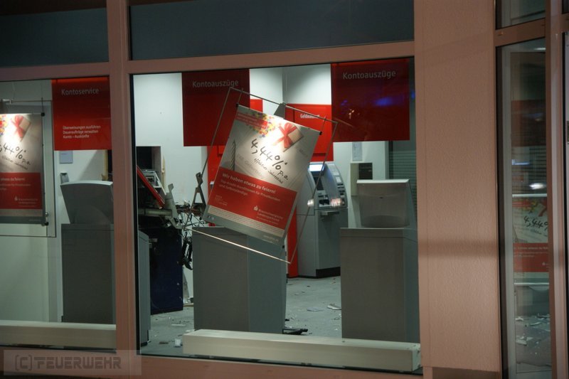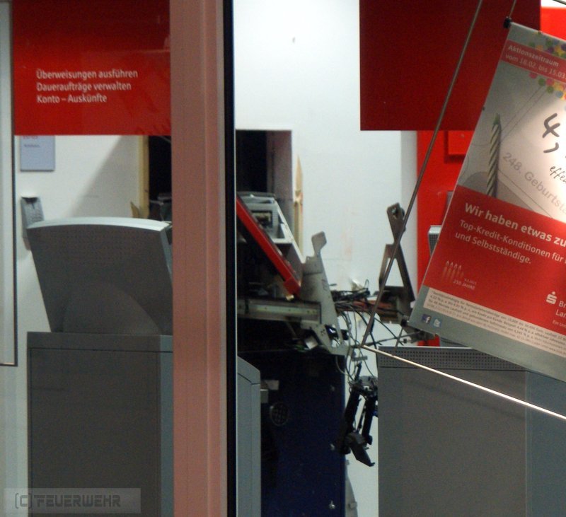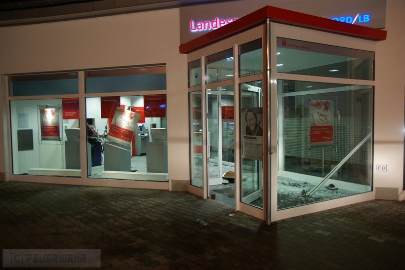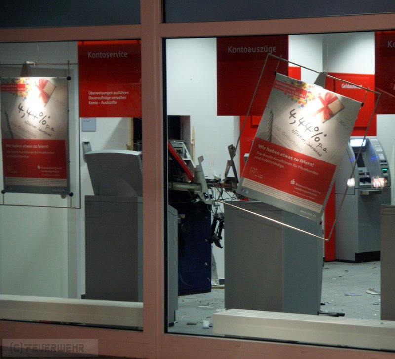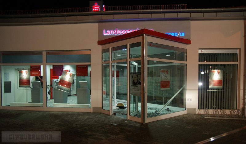 Unbekannte Täter haben in der Nacht gegen 01.00 Uhr des 19. Februar 2013 im Gewerbegebiet Cremlingen den Geld-Automat einer dort ansässigen Bank gesprengt. Die Feuerwehren aus Cremlingen, Schulenrode und Klein Schöppenstedt wurden aufgrund einer ausgelösten Brandmeldeanlage alarmiert. Schnell stellte sich jedoch für die Einsatzkräfte heraus, dass es sich hier nicht um ein Feuer, sondern um einen Überfall gehandelt hat. Der Feuerwehr blieb nur, die Einsatzstelle abzusperren.