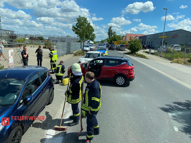 Nach einem Verkehrsunfall zwischen zwei Personenkraftwagen trat aus einem PKW Kühlflüssigkeit aus. Die auslaufenden Stoffe wurden mithilfe von Bindemittel von der Feuerwehr Cremlingen aufgenommen.