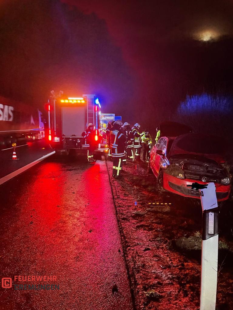 Aufgrund der glatten Fahrbahn verlor der Fahrer eines PKW ohne Fremdeinwirkung die Kontrolle über sein Fahrzeug . Der besagte PKW überschlug sich und kam auf dem Seitenstreifen zum Stehen.