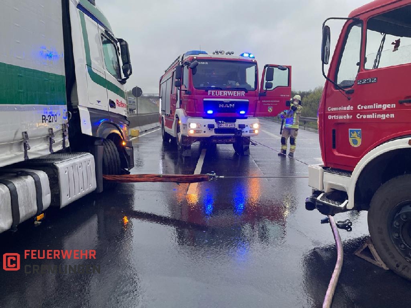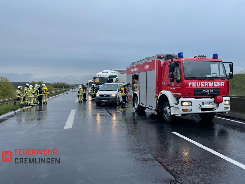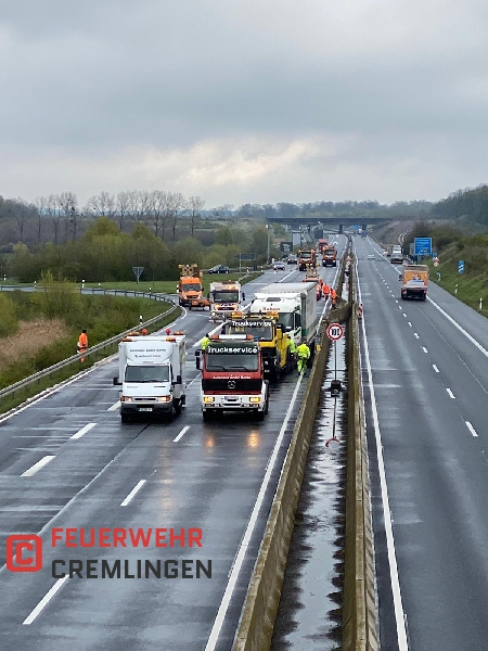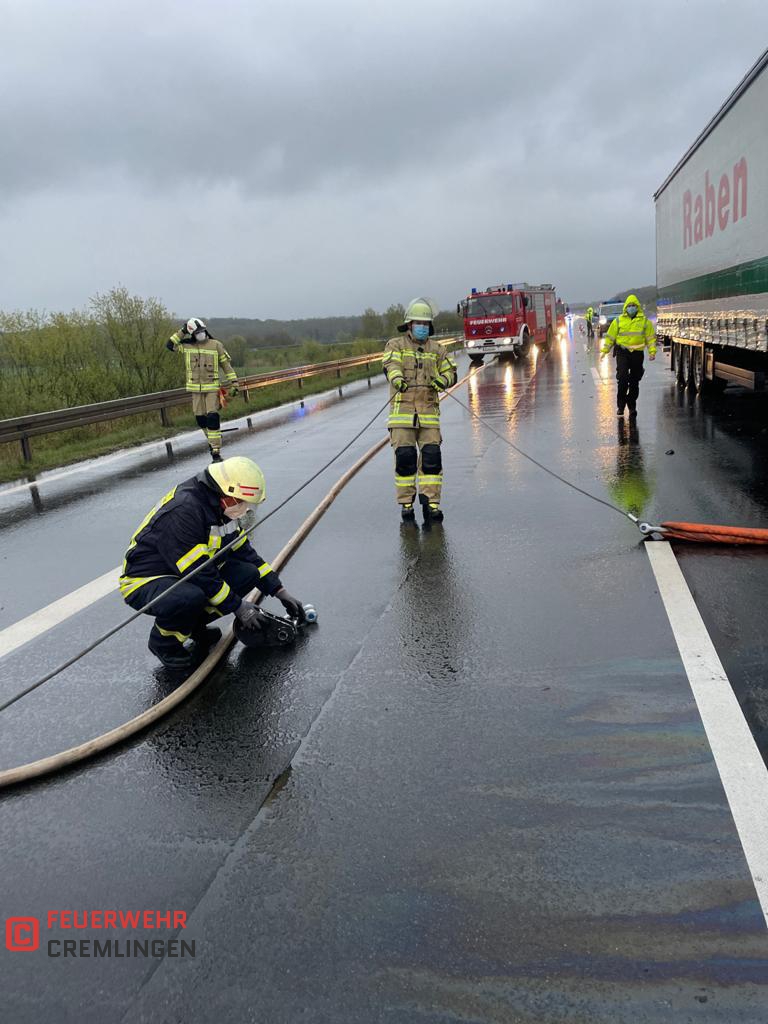 Am 07.05.2021 wurde die Ortsfeuerwehr Cremlingen um 05:55 Uhr zu einer Ölspur mit auslaufenden Stoffen aus einem Lastkraftwagen auf die Autobahn 39 Cremlingen Richtung Sickte alarmiert.